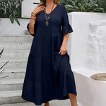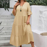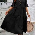 Introducing the Avelisse Graceful Flowy Dress, a timeless masterpiece that embodies comfort and sophistication. Designed with a relaxed tiered silhouette, this dress offers a flattering fit and graceful movement for any occasion.