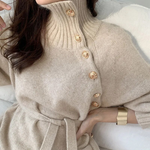 Relaxed Balloon Sleeves: Adds a cozy yet elegant dimension to the relaxed silhouette.