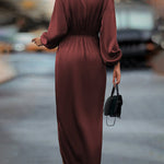 Long Sleek Sleeves: Adds dramatic elegance while keeping the look balanced and refined.