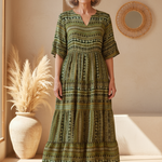 Introducing the Joraine Ethnic Flowy Dress, a stunning blend of tradition and modern sophistication. Designed with intricate patterns and a breezy silhouette, this dress embodies effortless beauty and cultural richness.