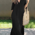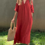 Stay stylishly relaxed with the Amalie Relaxed Casual Dress, a perfect companion for laid-back days. Its breezy design and versatile fit make it your go-to outfit for effortless charm and comfort.