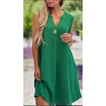 The Elsie Sleeveless V-neck Dress is the perfect balance of style and simplicity. Whether you're heading out for brunch or a day at the beach, this versatile dress will keep you looking chic and feeling comfortable all day long.