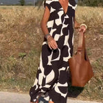 Introducing the Kendall - Relaxed Abstract Dress, a captivating fusion of modern design and breezy comfort. With its bold, abstract pattern and flowing silhouette, this dress is perfect for warm days, casual outings, or relaxed vacations.