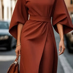✓ Architectural Silhouette: Statement wide sleeves and a refined drape that flow with every step.