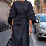 Introducing the Lissey - Minimalist Belted Luxe Dress, where sculptural tailoring meets quiet luxury. This dress is a stunning tribute to simplicity, crafted to make a bold statement with nothing but refined lines and poised structure.