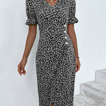 The Paloma Floral V-Neck Dress brings a fresh and feminine touch to your wardrobe. Perfect for any occasion, its flowy fit and charming floral print will keep you looking stylish and feeling comfortable.