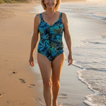 The Leandra - Tropical Breeze Swimsuit brings island-inspired elegance to your swimwear collection. With its lush tropical print and flattering wrap-style front, this one-piece is designed to highlight your shape while keeping you comfortable and confident by the water.
