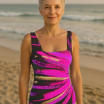 The Marina - Tidal Glow Swimsuit captures the beauty of ocean waves with its striking swirl design. Made to flatter and support, this one-piece features a sleek silhouette that highlights your curves while ensuring comfort whether you’re lounging poolside or diving into the sea.