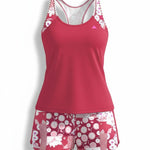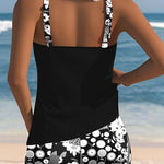 The Virella - Summer Blossom Tankini is the perfect blend of playful charm and easy comfort. With its floral-print shorts and sleek black tankini top, this set offers a stylish and practical choice for beach days, poolside lounging, or active swim sessions.
