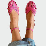 Sandali da donna dal design elegante che valorizzano la femminilità e offrono comfort ad ogni passo. I dettagli sulla tomaia donano un tocco di carattere unico, mentre il sottile cinturino alla caviglia garantisce una calzata stabile. Scelta ideale per serate, eventi e uscite raffinate.
