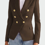 Giacca elegante con una vestibilità che valorizza la silhouette ed esalta lo stile. Presenta un raffinato colletto con revers, doppia abbottonatura frontale e due tasche laterali con patta. Il suo design senza tempo la rende ideale sia per look professionali che per uscite serali, offrendo sicurezza e raffinatezza in ogni occasione.