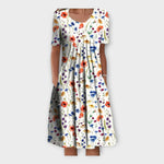 Questo abito con motivo floreale offre una sensazione unica di libertà e femminilità. Con una linea comoda, maniche corte e tasche che aggiungono praticità, è un'ottima scelta per passeggiate, caffè o attività quotidiane con stile.