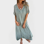 Eleva il tuo look estivo con questo vivace abito arancione, che offre il massimo comfort e un'eleganza senza sforzo. La sua linea ampia e il tessuto leggero lo rendono ideale per le giornate calde.