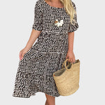 Metti in risalto il tuo stile estivo con questo abito leggero che combina tonalità naturali con un motivo discreto. Un pezzo che offre comfort ed eleganza ad ogni tuo passo.