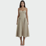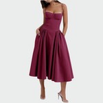 Un abito impressionante e senza tempo che abbraccia la silhouette e regala un'eleganza irresistibile. Il corpetto aderente con spalline sottili mette in risalto la femminilità, mentre la gonna leggera offre comfort e movimento. Ideale per serate eleganti, inviti raffinati e momenti speciali.