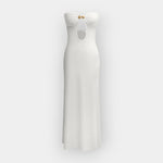 Elegante e leggero, questo abito senza spalline esalta la femminilità con discreta raffinatezza. Ideale per giornate soleggiate e serate estive con stile e comfort.