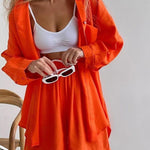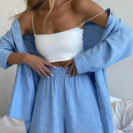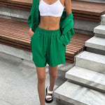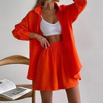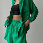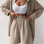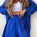 ✔ Versatile Two-Piece Design: A classic oversized button-up paired with high-waist shorts for endless styling possibilities.