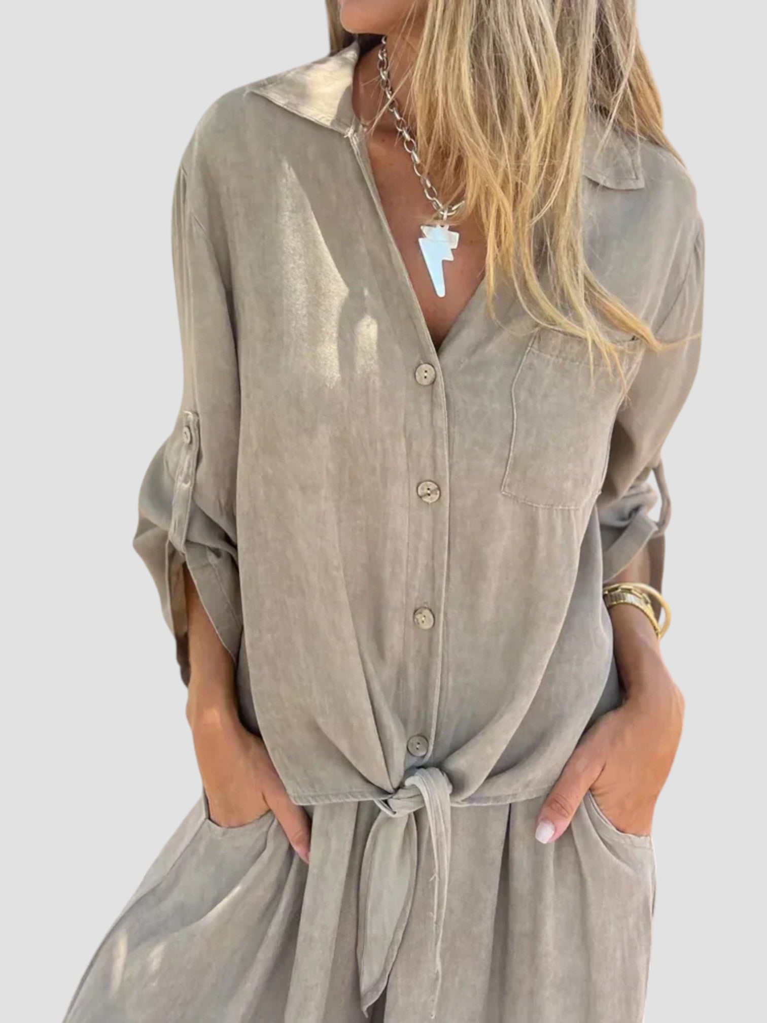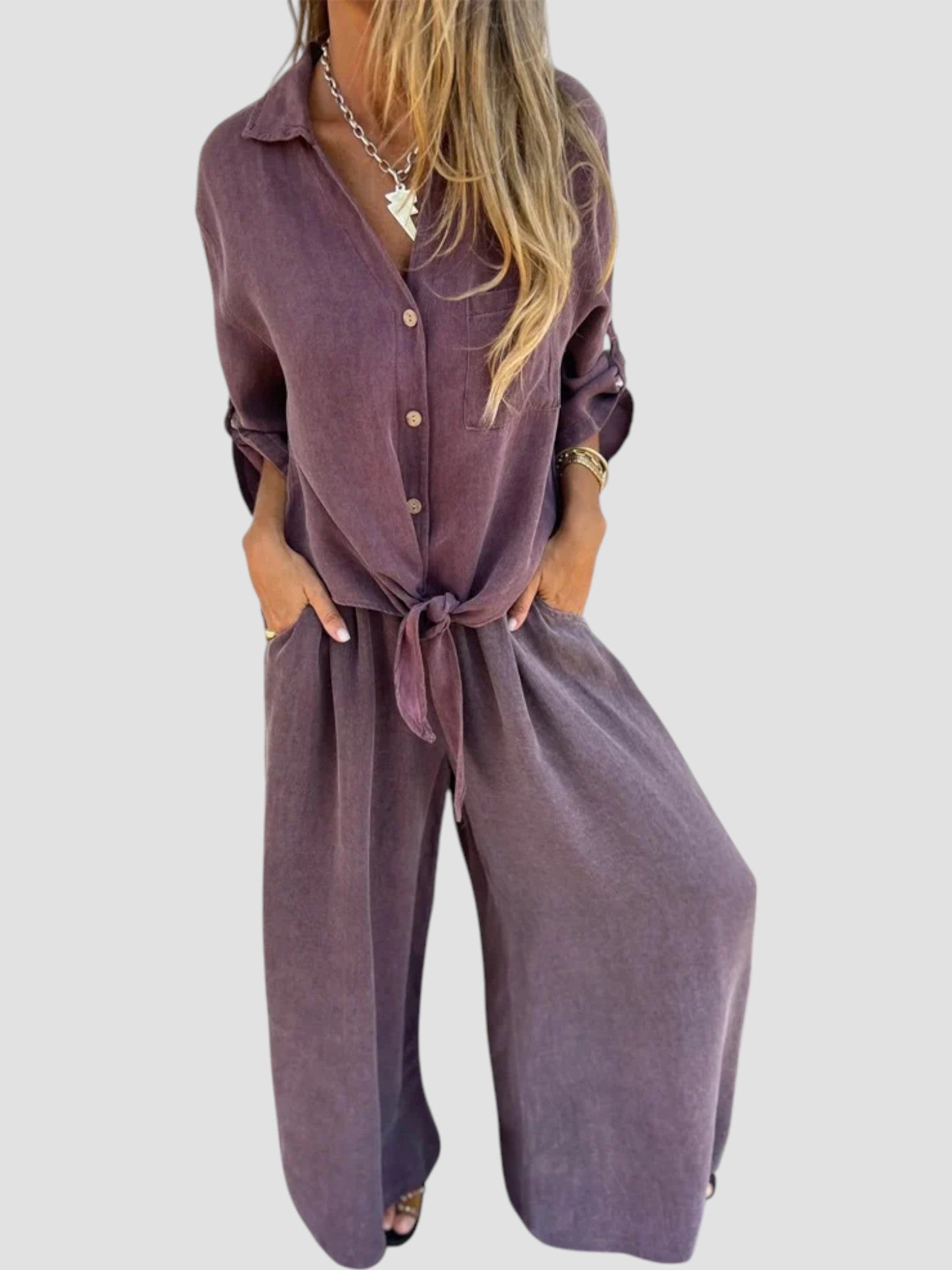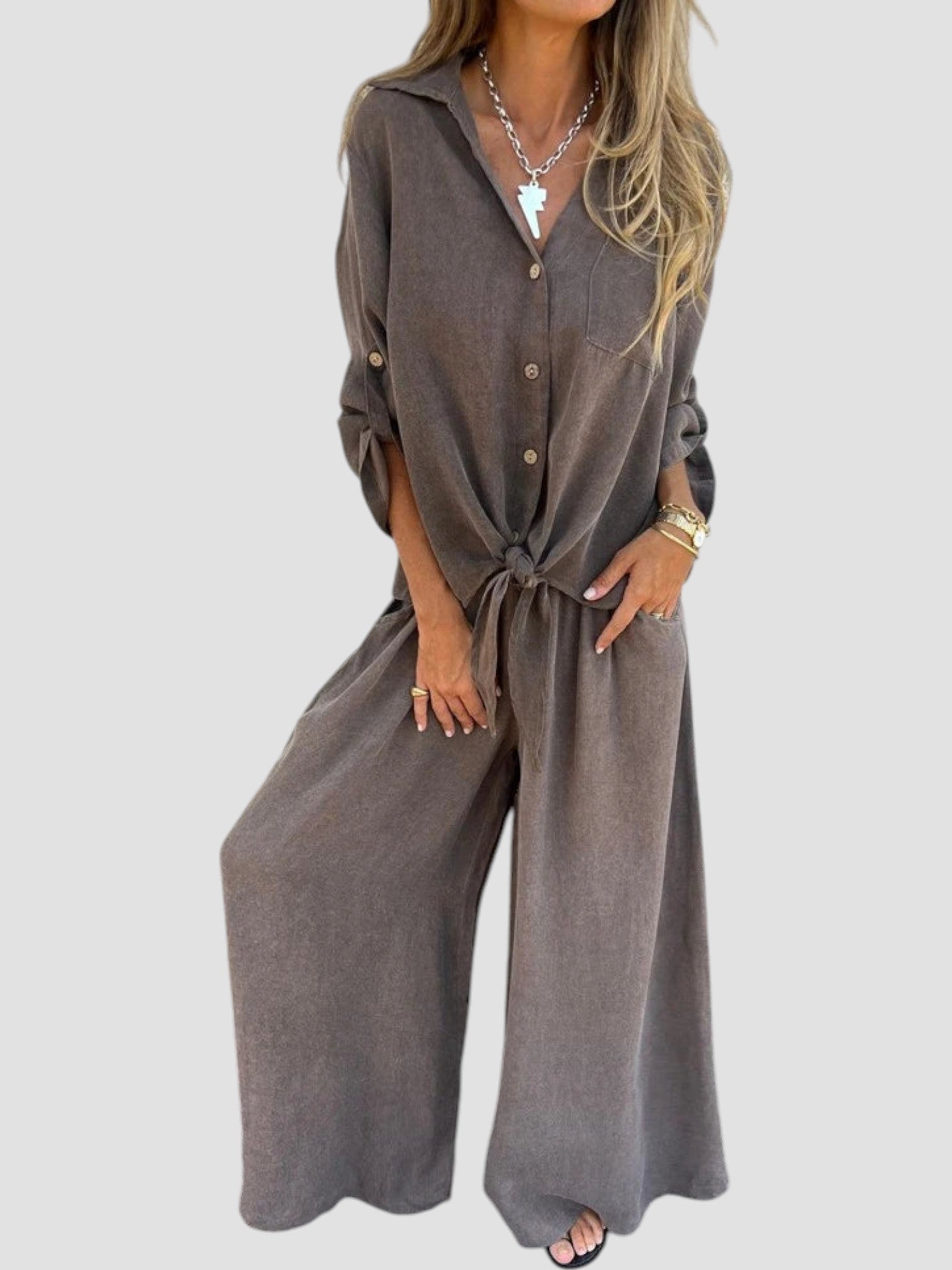 Angelica è il completo due pezzi che non può mancare nel tuo guardaroba estivo. Leggero, armonioso e incredibilmente versatile — perfetto per giornate di sole, uscite nel weekend o momenti casual chic in città.