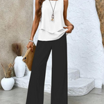 ✔ Chic Layered Top: The layered design of the sleeveless top adds a refined touch, making it versatile for both casual outings and dressier events.