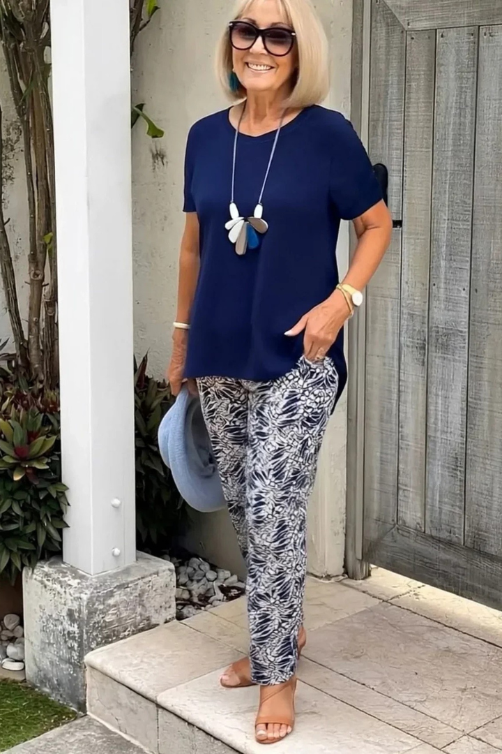 • Mix and Match Magic: The best bit? You can wear the royal blue top with your fave jeans or pair the patterned pants with a crisp white tee!