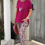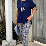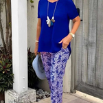 This ain't your average outfit, it's the Bella set—your new go-to for looking absolutely sensational without the fuss. Combining a stunning royal blue top with funky, eye-catching patterned pants, this two-piece is pure gold for cruising through the Aussie summer or heading out for a casual arvo catch-up. It's comfy, stylish, and perfect for when you want to look the goods without trying too hard.