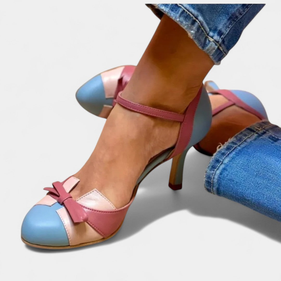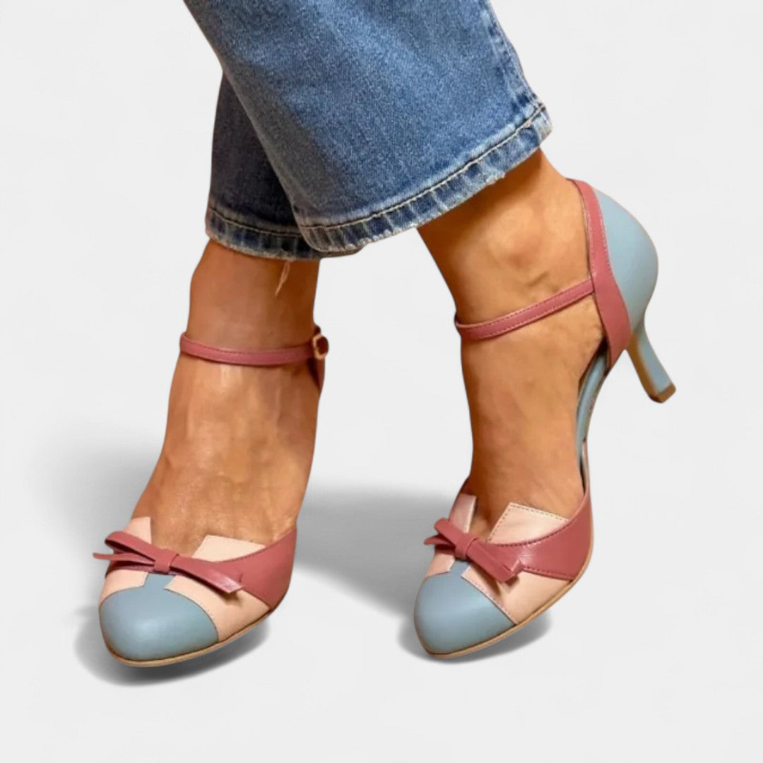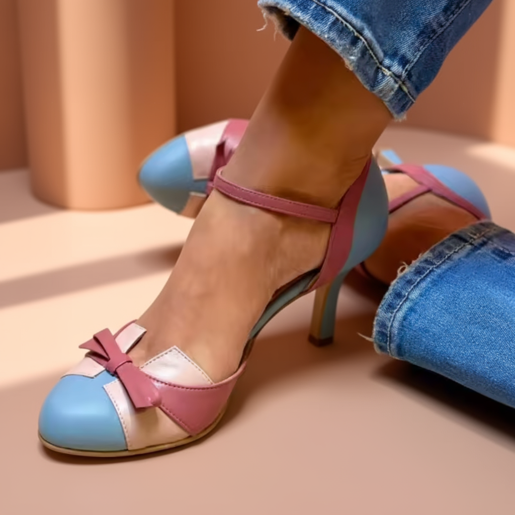 Meet the Elsie | Round Toe Heels — a playful yet elegant pair that blends vintage inspiration with modern-day comfort. Featuring soft pastel tones, a chic round toe, and a delicate bow detail, these heels are designed to add a touch of timeless femininity to any outfit.