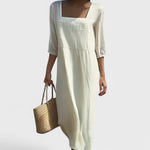 L'abito Feliane unisce eleganza disinvolta e comfort naturale. Realizzato per le donne che nei giorni caldi desiderano combinare stile, leggerezza e libertà di movimento.