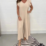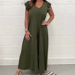 Looking for an outfit that combines style and comfort? Look no further than our FIONA Jumpsuit with a V-neckline, offering the best of both worlds. The unique design ensures a perfect fit and luxurious feel, while the wide-leg design makes it versatile for any occasion, from relaxed days to active moments.