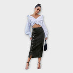 Una gonna che combina eleganza e praticità, offrendo il tocco finale perfetto per ogni outfit. Il suo design versatile la rende ideale per tutte le occasioni, da casual a più eleganti. Con un'estetica minimalista e una vestibilità comoda, è un pezzo fondamentale per ogni guardaroba.