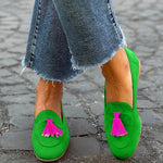 The Haven - Vibrant Comfy Loafer brings a pop of joy to every step. With its bold green hue and contrasting pink tassels, this loafer redefines modern comfort and confident style — perfect for those who love to stand out effortlessly.