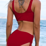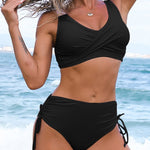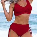 The Kalani - Elegant Bikini Set is your go-to for timeless style and unbeatable comfort. With its chic wrap-style top and adjustable high-waist bottoms, this set gives you full control over your fit while radiating beachside sophistication.