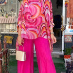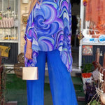 Step into a world of color and movement with the Lichelle - Artistic Breeze Set. Featuring a mesmerizing swirl print top and flowy wide-leg pants, this ensemble is designed for those who love bold yet graceful fashion.