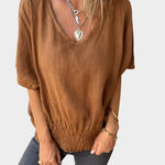Metti in risalto il tuo stile quotidiano con questa irresistibilmente comoda maglietta in una naturale tonalità marrone. Con una vestibilità rilassata e un discreto scollo a V, combina semplicità ed eleganza per ogni occasione.