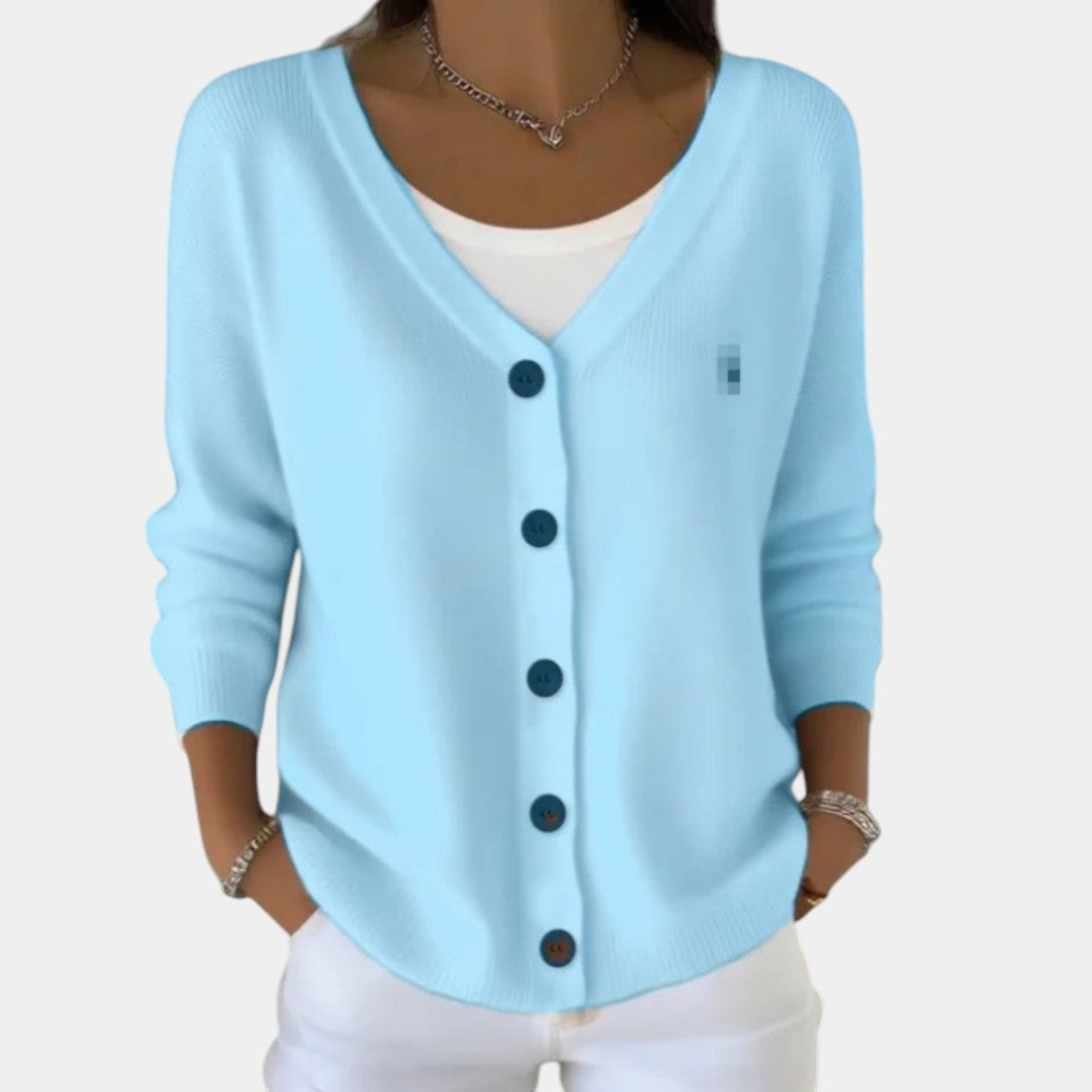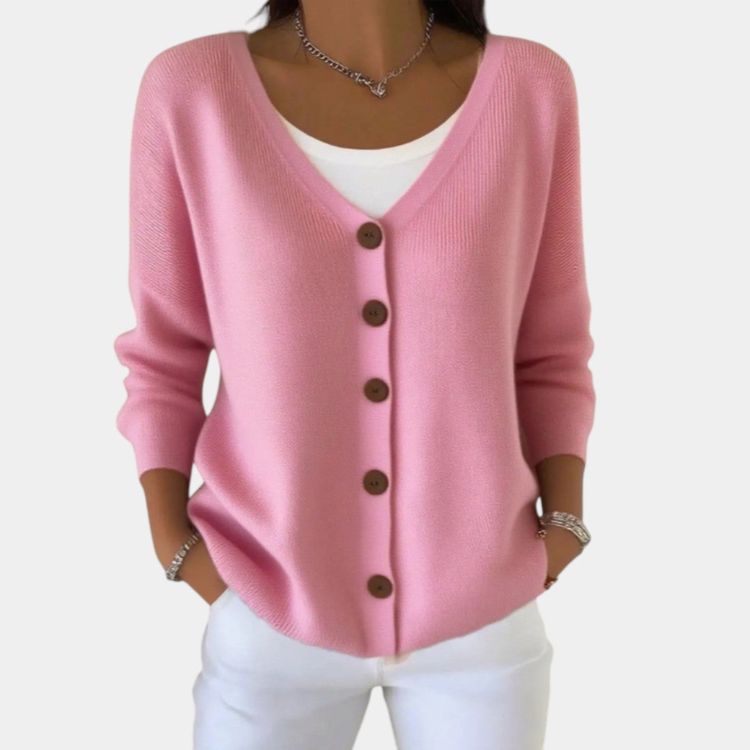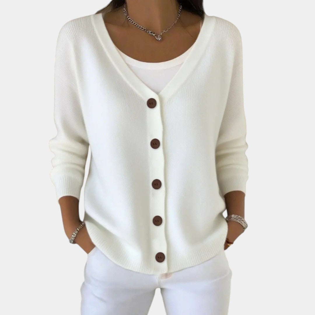 Il Cardigan Maida unisce eleganza casual e semplicità accogliente. Con il suo scollo a V valorizzante, la chiusura frontale con bottoni e la maglia delicatamente testurizzata, è un capo versatile perfetto per le mattine fresche, gli abbinamenti in ufficio o i pomeriggi rilassati. Progettato per offrire comfort e praticità, è il tipo di indumento che si indossa con piacere e stile.
