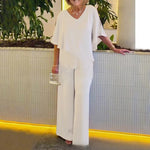 The Martha Effortless Wide-Leg Set offers the perfect blend of elegance and relaxation. Whether you're hosting an event or enjoying a casual evening, this set ensures you look and feel your best with minimal effort.