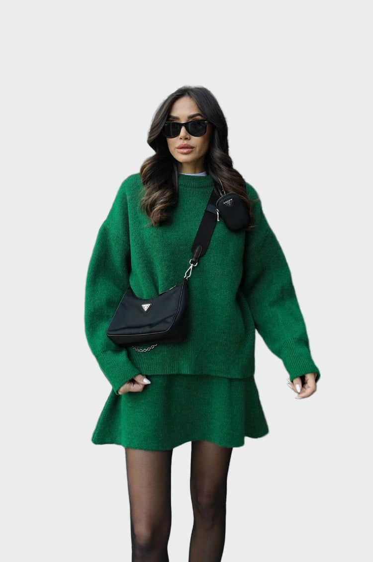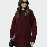 Un set che combina eleganza e comfort con una vestibilità rilassata. La sua morbida texture offre una piacevole sensazione, mentre il design minimale lo rende ideale per occasioni quotidiane ma anche per eventi più particolari. Un pezzo senza tempo che completa ogni look con raffinatezza.