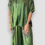 Con il completo Miah in satin, combini eleganza e comfort senza sforzo. Questo set è perfetto per un look casual ma raffinato, adatto a ogni occasione. Che tu abbia una giornata rilassata o una serata elegante, questo completo offre il perfetto equilibrio tra lusso e stile casual.