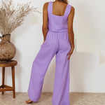 Comfortable Fit: The relaxed wide-leg pants and tailored top provide all-day ease.
