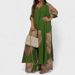 Il set Moriel offre un perfetto equilibrio tra chic rilassato ed eleganza moderna. Caratterizzato da una camicetta fluida e da pantaloni a gamba larga con una morbida stampa artistica, promette comfort senza rinunciare allo stile.
