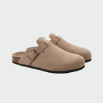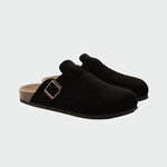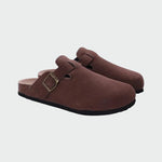 Scoprite l'eleganza e il comfort con questi sabot in camoscio marrone. Il loro design senza tempo si combina con una suola resistente, mentre la fibbia regolabile offre una vestibilità perfetta per l'uso quotidiano.