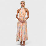 Scopri Paolla, l’abito floreale pensato per le giornate di sole, le serate speciali e tutto ciò che l’estate porta con sé. Il suo design halter mette in risalto le spalle, mentre la vita definita e la gonna ampia donano movimento e leggerezza a ogni passo.