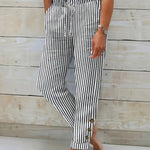 Step into ultimate comfort and style with the Raquelle - Casual Striped Pants. Featuring a chic vertical stripe design, these pants elongate your legs while offering a relaxed yet polished look. Whether you're lounging at home, strolling through the city, or heading to brunch, these versatile pants will keep you looking effortlessly stylish.