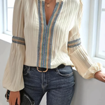 Introducing the Renata Stunning V-Neck Blouse, a perfect blend of sophistication and style. This blouse features intricate detailing that makes it an ideal choice for both casual and refined looks, effortlessly elevating your outfit.