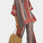 Salopette Oversize Daisy in Lino con Righe Rosse Corallo e Grigio, Stile Moderno e Confortevole