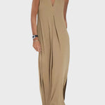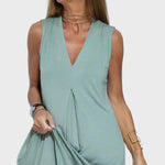Metti in risalto la tua naturale eleganza con questo abito senza maniche in una tonalità verde terra. Ideale per look quotidiani ma anche per uscite più informali con amici.