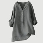 Emana un'eleganza discreta con questa blusa bianca dal design minimalista. Il suo carattere rilassato con scollo a V e bottoni frontali offre praticità e stile, mentre le maniche arrotolate aggiungono un tocco informale e moderno. Scelta ideale per look quotidiani e professionali.