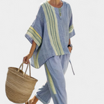Set in lino di bambù con incantevole lavanda e dettagli a righe gialle