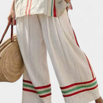 Set Mediterraneo Daisy in lino di bambù con eleganti righe rosse e verdi