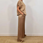 Il set Ruslana combina eleganza senza tempo con un comfort lussuoso. La blusa fluida e i pantaloni larghi in tessuto lucido garantiscono un aspetto stiloso, sia nella vita quotidiana che in occasioni speciali.
