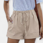 Questi eleganti shorts portano brillantezza e comfort in ogni tua apparizione. La texture in raso e la cintura discreta con anello creano un look raffinato che si distingue, mentre la vita elasticizzata abbraccia il corpo con comodità.
